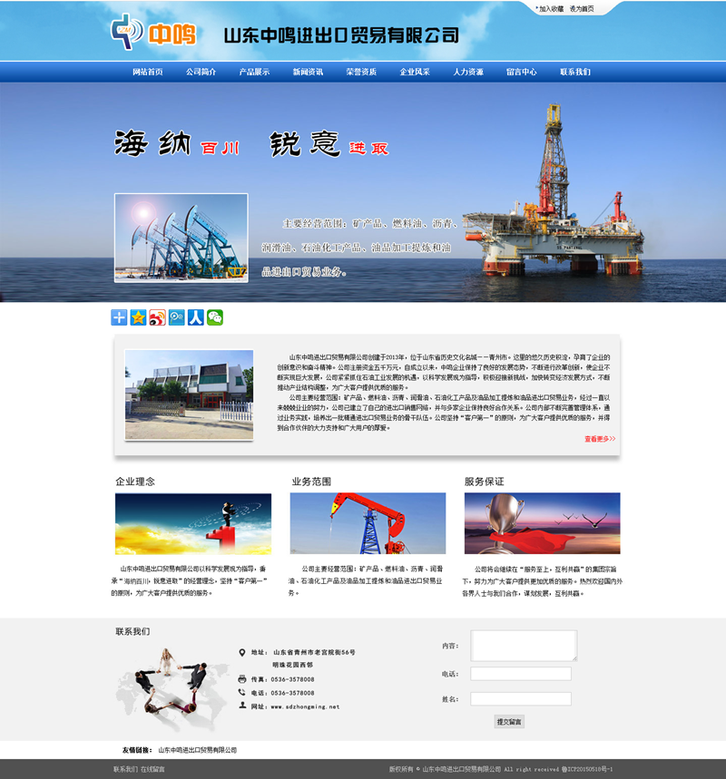 山東中鳴進出口貿易有限公司創(chuàng)建于2013年,位于山東省歷史文化名城——青州市。這里的悠久歷史積淀,孕育了企業(yè)的創(chuàng)新意識和奮斗精神。公司注冊資金五千萬元,自成立以來,中鳴企業(yè)保持了良好的發(fā)展態(tài)勢,不斷進行改革創(chuàng)新,使企業(yè)不斷實現巨大發(fā)展,公司緊緊抓住石油工業(yè)發(fā)展的機遇,以科學發(fā)展觀為指導,積極迎接新挑戰(zhàn),加快轉變經濟發(fā)展方式,不斷推動產業(yè)結構調整,為廣大客戶提供優(yōu)質的服務。